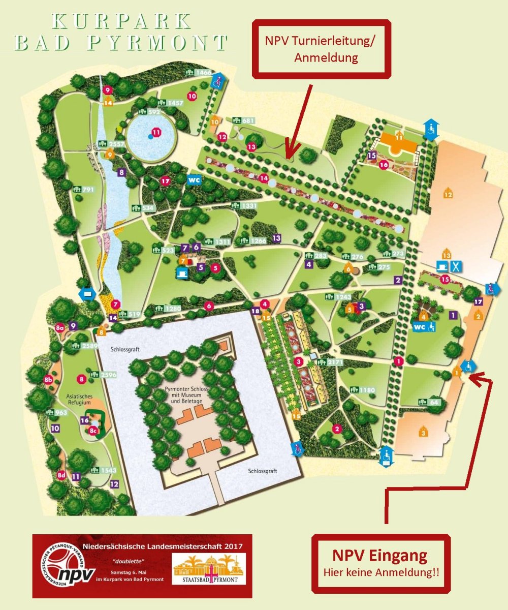 - Die NPV-Turnierleitung befindet sich in der Nähe des Goldfischteiches (im Norden des Parks).