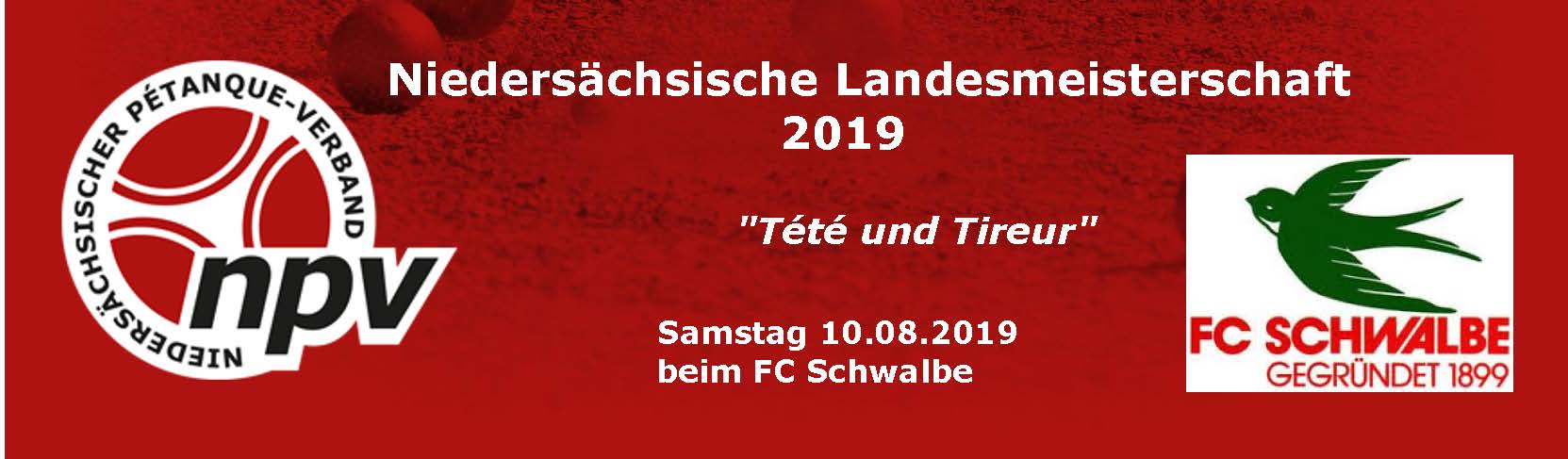 Die Landesmeisterschaft Tête-a-tête und Tireur 2019 wird vom FC Schwalbe 1899 in Hannover ausgerichtet.