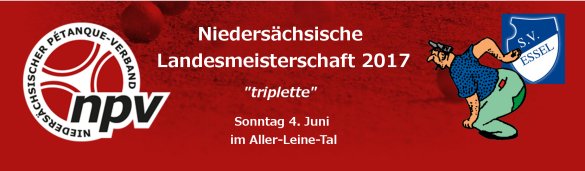 Die eingeschriebene Teilnehmerzahl von 83 spielenden Teams ist um einiges niedriger als in den letzten beiden Jahren (98 bzw. 104 Teams) und damit auch erheblich geringer als geplant. Da der SV-Essel für die nun feststehende Teilnehmerzahl eine ausreichende Anzahl an Spielflächen zu Verfügung stellen kann, wird auf die Vorturniere verzichtet und die Landesmeisterschaft wird als einphasige Veranstaltung durchgeführt. Alle eingeschriebenen Teams spielen also am Sonntag, den 4.6., in Essel.