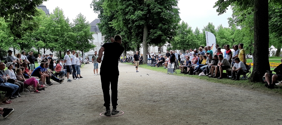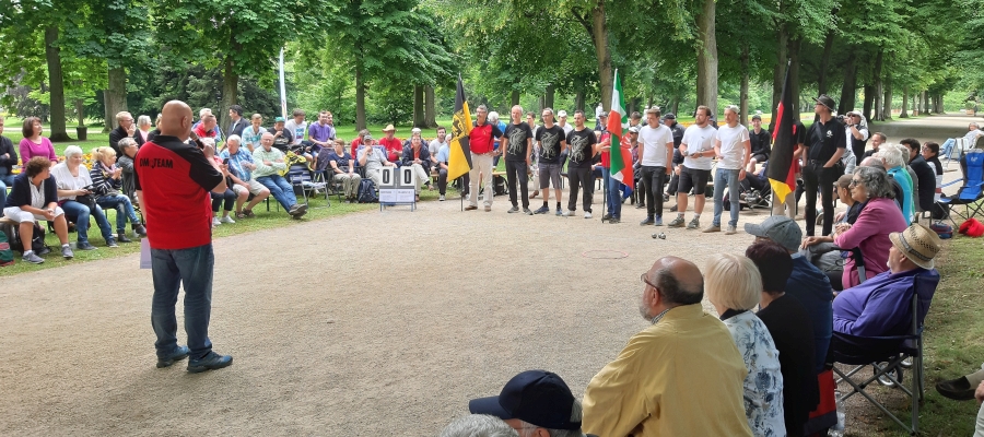 „Es war ein rauschendes Pétanque-Festival, das der Niedersächsische Pétanque-Verband zu seinem 30sten Jubiläum als Veranstalter der Deutschen Meisterschaft Triplette 2019 auf die Beine gestellt hatte. In der wundervollen Umgebung des Kurparks von Bad Pyrmont stimmte einfach alles. Die sauber abgesteckten Wettkampf-Felder auf den langen Alleen und großzügigen Plätzen – in dem sehr gepflegten Ambiente des Parks – ließen keine Wünsche übrig. Die Verpflegung der Teilnehmer, Gäste und Zuschauer durch einen professionellen Catering-Service war ausgezeichnet und preiswert – und die Organisation durch das bewährte DM-Team des Deutschen Pétanque Verbandes, rund um Alfons Schulze-Niehues, ist ohnehin längst legendär.