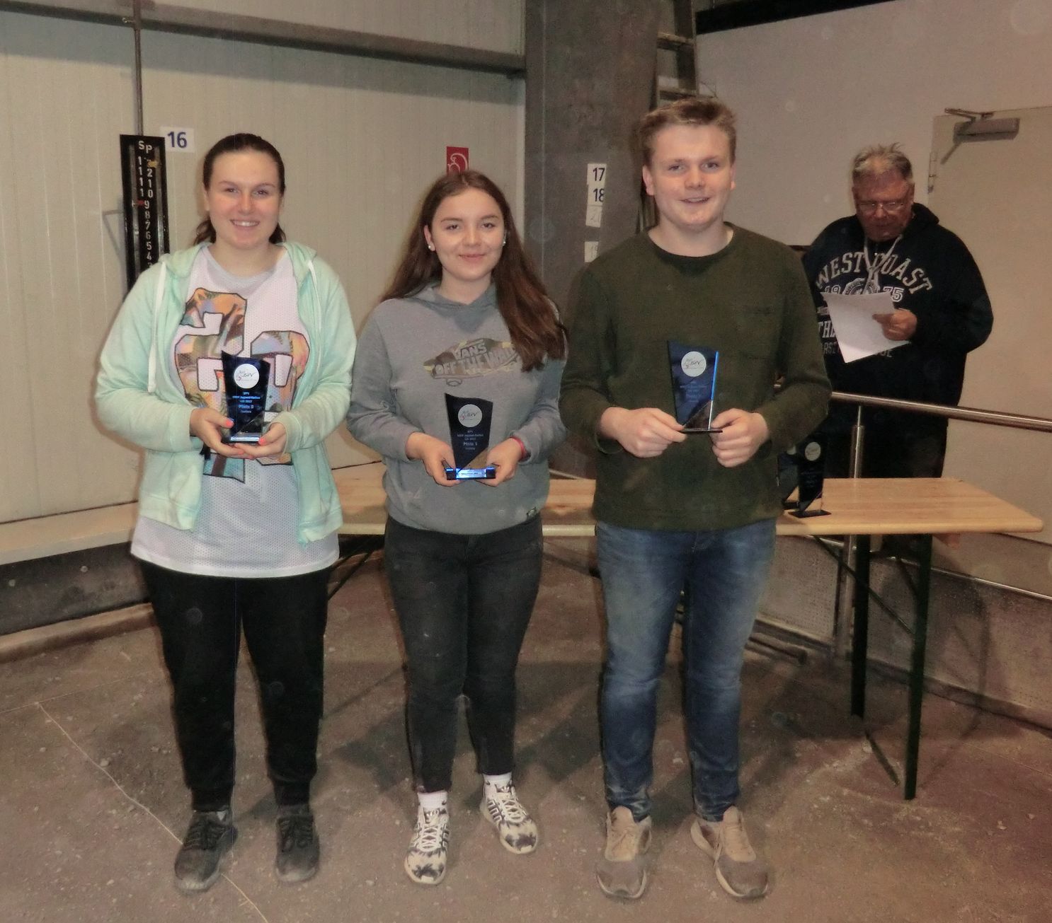 Juniors 2: Ann-Kathrin Ferenz, Celine Katerbau, Malte Steglich (Coach Sabine Stuchlik)