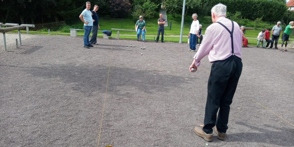 Die Gruppe hat sich 2014 gegründet und plant seither im Sechs-Wochen-Rhythmus gemeinsame Freizeitaktivitäten. Diesmal erklärten Heike Gläser und Volker Sarbach den Gästen die Grundzüge des Spiels und die Wurftechnik. Das Gelernte setzten die LBMAB-Mitglieder schnell in zwei Gruppen in die Praxis um. Der gemeinsame Spaß und die Freude über gelungene Würfe stand dabei im Vordergrund. Wer am Ende die 13. Kugel gelegt hat, war für alle Beteiligten nachrangig! Mit dem Versprechen, wieder zu kommen, ging es gut gelaunt zum Ausklang für die Gruppe zum örtlichen „Griechen“ am Elbdeich.