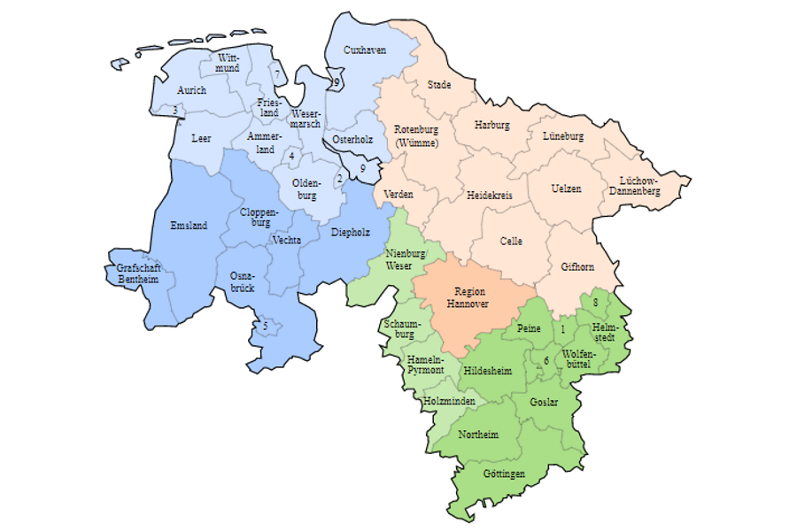 Die Absteiger aus der Niedersachsenliga werden den Regionen ihrer Vereine zugeordnet. So bekommt die Region Nordost FC Schwalbe Hannover 1 und TuS Nenndorf 1 zugeordnet, Region Süd bekommt den 1. Göttinger PC 1 und die Region West nimmt keinen Absteiger auf.