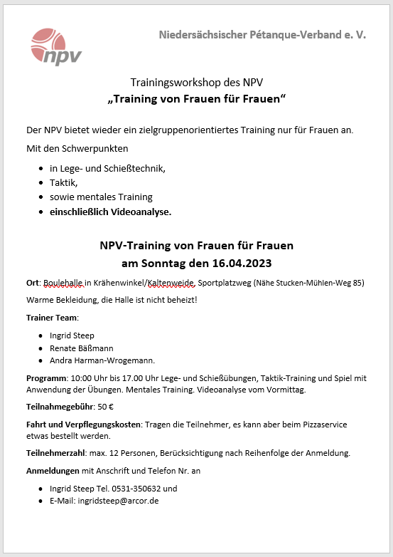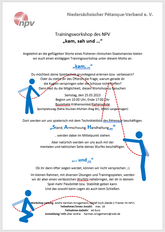 Der NPV startet mit zwei Workshops in das Trainings-Sportjahr 2023: